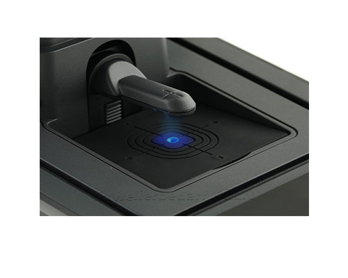 - Zwei farbcodierte (blau / rote) Anzeigeleuchten, um die UV-Lichtabsorption bei blauem Licht gering oder hoch abzulesen, was auf natürliche Diamanten und auf rotes Licht für synthetische Diamanten hinweist
