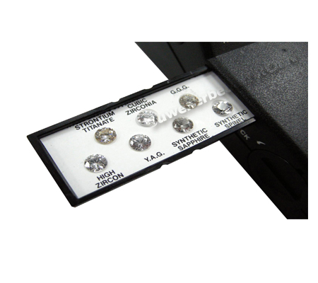 - Testet Edelsteine mit zwei Tests der thermischen und Reflexionseigenschaften, um mehr über den Edelstein zu erfahren