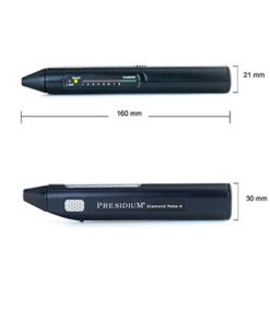 Der Presidium Diamond Mate Tester (PDMT) verfügt über eine einziehbare Sondenspitze, die während des Tests für einen beständigeren Druck auf den Edelstein sorgt, um zuverlässigere Ergebnisse zu erzielen. Mit der dünnsten Sondenspitze der Industrie von 0,6 mm testet PDMT Diamanten von nur 0,02 ct. Testergebnisse werden sofort durch ein LED-Licht und einen kontinuierlichen Signalton angezeigt.