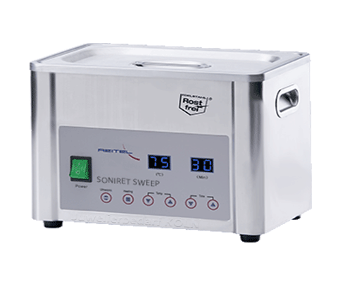 Ultraschallreinigung bietet sich für die unterschiedlichsten Materialien an. Fertigungsteile, die keinen hohen Temperaturen ausgesetzt werden dürfen, lassen sich optimal mit Ultraschall reinigen. Selbst schwer erreichbare Stellen werden durch die Druck- und Sogwellen erzeugten Bläschen gesäubert. Die SWEEP-Technik (Frequenzautomatik) ermöglicht es, ein besonders homogenes und gleichmäßiges Ultraschallfeld im gesamten Beckenvolumen zu erzeugen. Die ständig wechselnden Frequenzen vermeiden Schäden an empfindlichen Reinigungsobjekten und sorgen für eine sehr effektive und materialschonende Reinigung. Die Reinigungsleistung wird nach Bedarf durch Einschalten der leistungsstarken integrierten Heizung intensiviert.